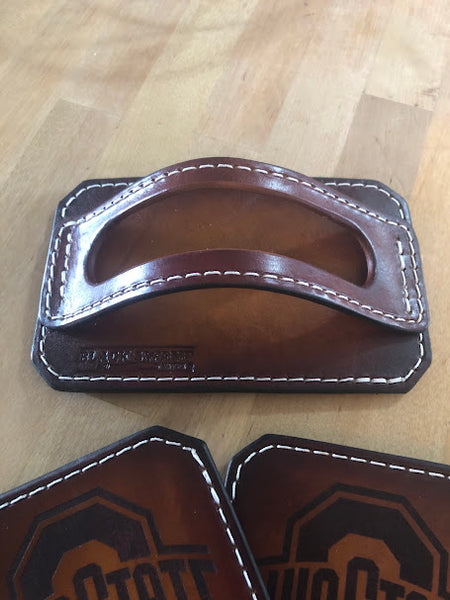 Rugged. Reliable. Patriotic. These coasters are made from high-grade leather and branded with that iconic Ohio State insignia. They’re rugged enough to handle your heaviest pours and stylish enough to sit pretty by your fireplace.
