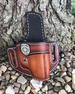 POLICE Emblem Style Retention Leather Holster OWB -BROWN (Locking Leather) - Black Swamp Leather Company