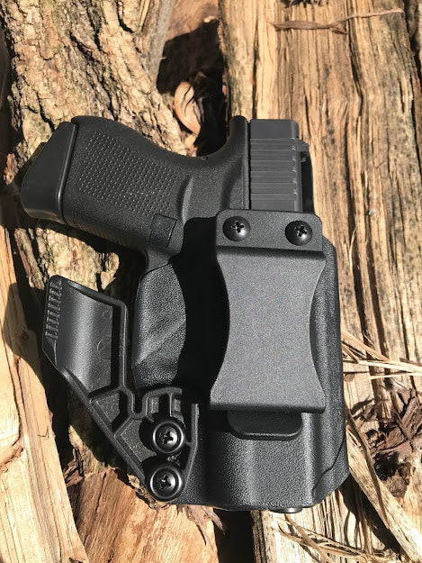 Kydex inside waistband holster. This holster is made from .08" thick durable kydex. Holster features the CLAW allowing for deeper concealment as the CLAW pushes the grip of the firearm against your body hiding the firearm even more than the standard IWB Kydex. The loop is a poly tactical quick clip that will accommodate up to 1.75" belt. The holster also is made with adjustable retention.